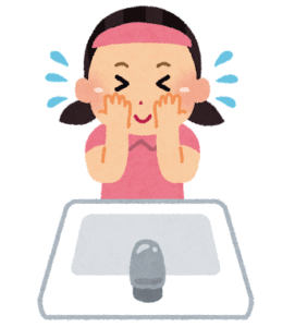 洗顔をして汚れや化粧などをしっかり落としてください。